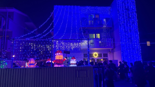 7日、イルミネーションが完成した。朝からみんなで トンカントンカン!