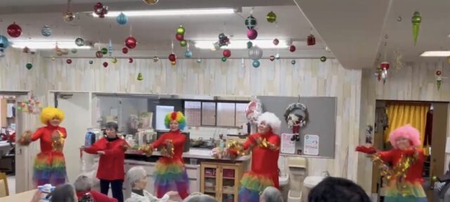 そして今日、朝からみんなでクリスマスを閉じました。イルミネーションをお片付け、サンタさんたちに「また来年ね」と箱に仕舞いました。そして‥‥