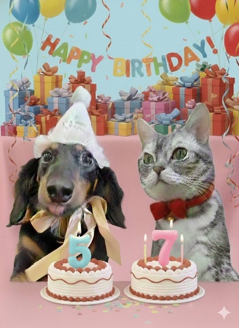 happy happy happy birthday🎉 2026年3月3日 最終更新日時 : 2026年3月3日 meino-ouchi コテツが5歳になった! アメリが7歳になった! いっぱい写真加工しちゃった‼‼‼若者みたい。ウフフフフ やんちゃなふたり。愛おしいふたり。可愛いふたり。 自由に幸せな穏やかな一年を送ってほしいと願います。